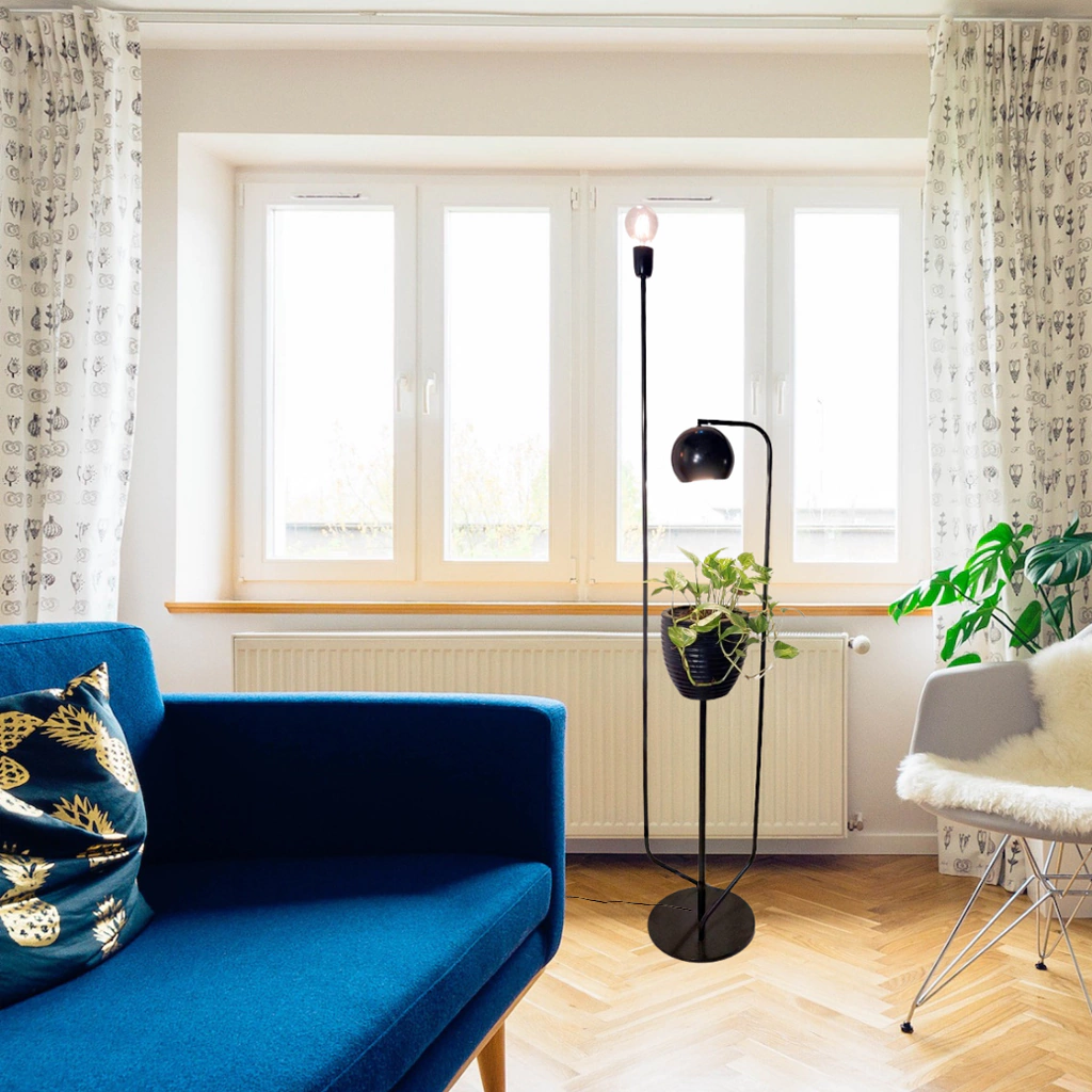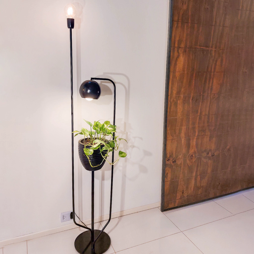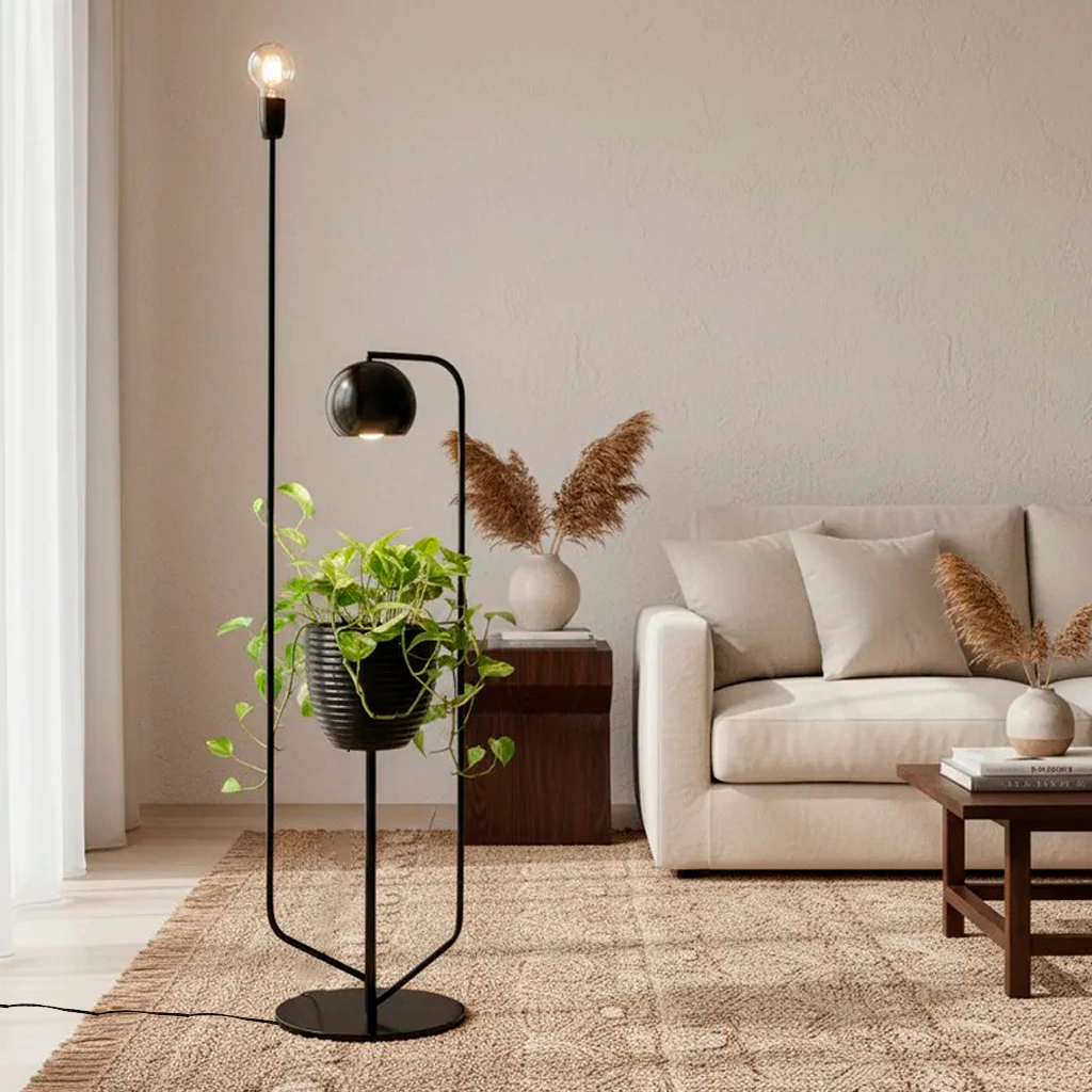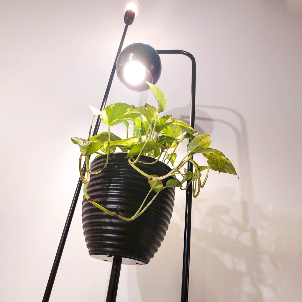 Base sólida de gran resistencia. Dos cabezales distintivos añaden funcionalidad y estilo único a esta lámpara. Uno de los cabezales, con luz focal, ilumina delicadamente una planta central, creando un ambiente acogedor y resaltando la belleza de la naturaleza en tu hogar.