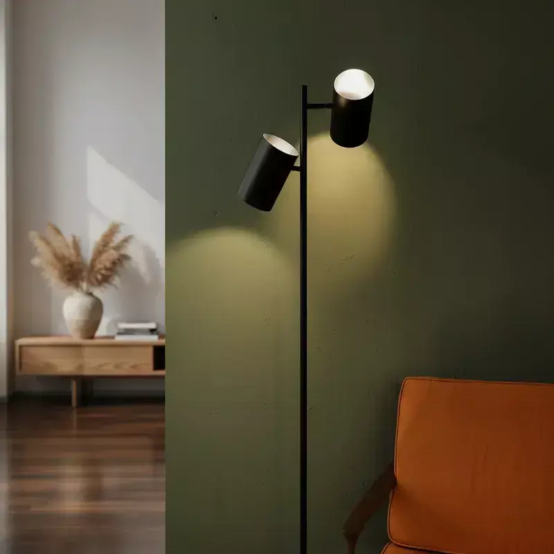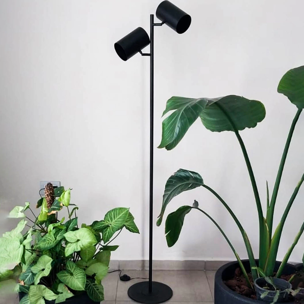 Impresionante pieza, solo para exigentes, realizada completamente en metal pintado a horno. La lámpara "Cactus" presenta una base robusta y pesada que garantiza estabilidad y resistencia. Un caño recto se eleva hacia arriba del que salen dos cabezales cilíndricos, con la potencia de lámparas dicroicas, direccionando la luz con gran intensidad.
