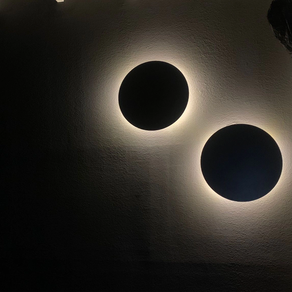 Este fascinante accesorio no solo ilumina tu espacio, sino que también crea una experiencia visual única, inspirada en un eclipse solar.El aplique "Eclipse" está elaborado con metal pintado a horno, brindando una apariencia moderna y duradera. Detrás de este se encuentra un LED que refleja en la pared y genera este efecto