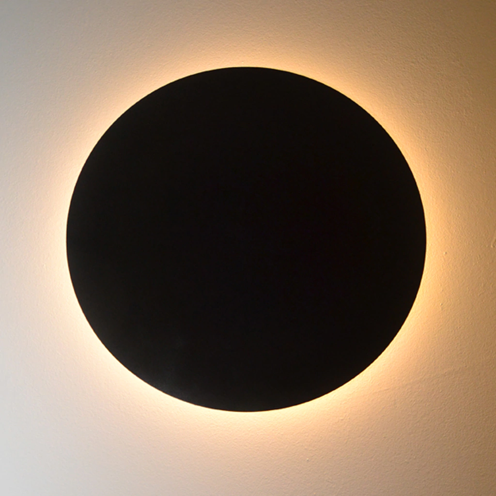 Este fascinante accesorio no solo ilumina tu espacio, sino que también crea una experiencia visual única, inspirada en un eclipse solar.El aplique "Eclipse" está elaborado con metal pintado a horno, brindando una apariencia moderna y duradera. Detrás de este se encuentra un LED que refleja en la pared y genera este efecto