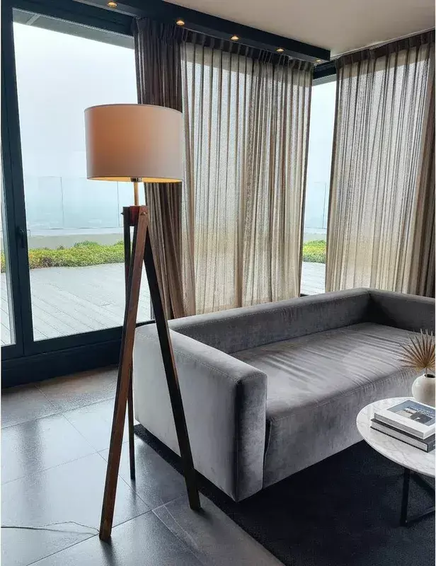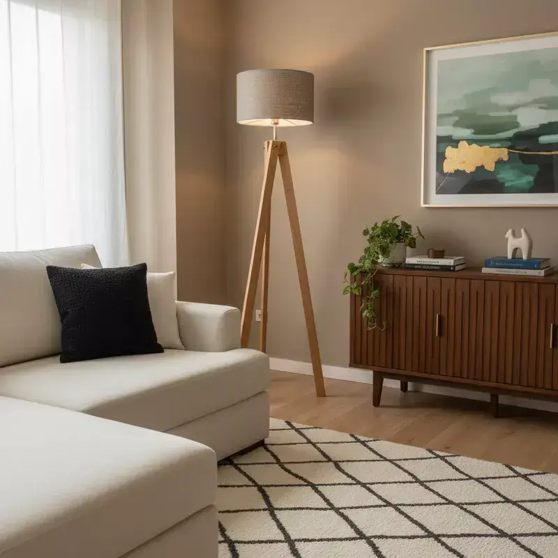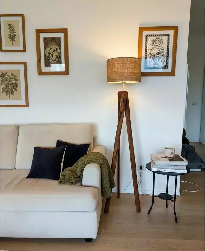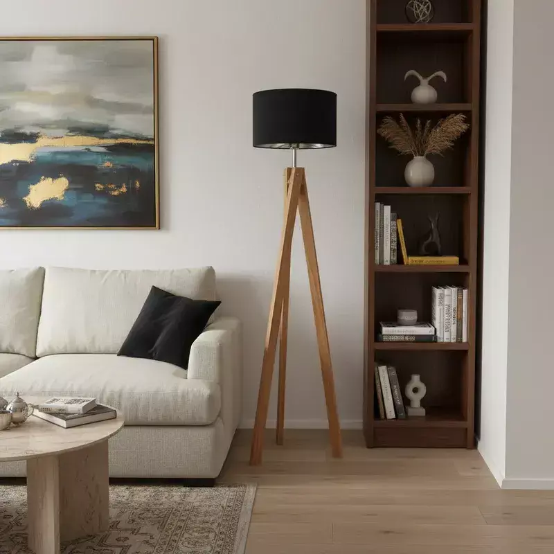 Elegante diseño que combina la calidez de la madera con una estructura trípode única. La base trípode de madera sólida no solo proporciona estabilidad, sino que tambien añade un toque un toque de naturaleza a tu hogar. La pantalla difunde la luz de manera uniforme para crear una atmósfera acogedora