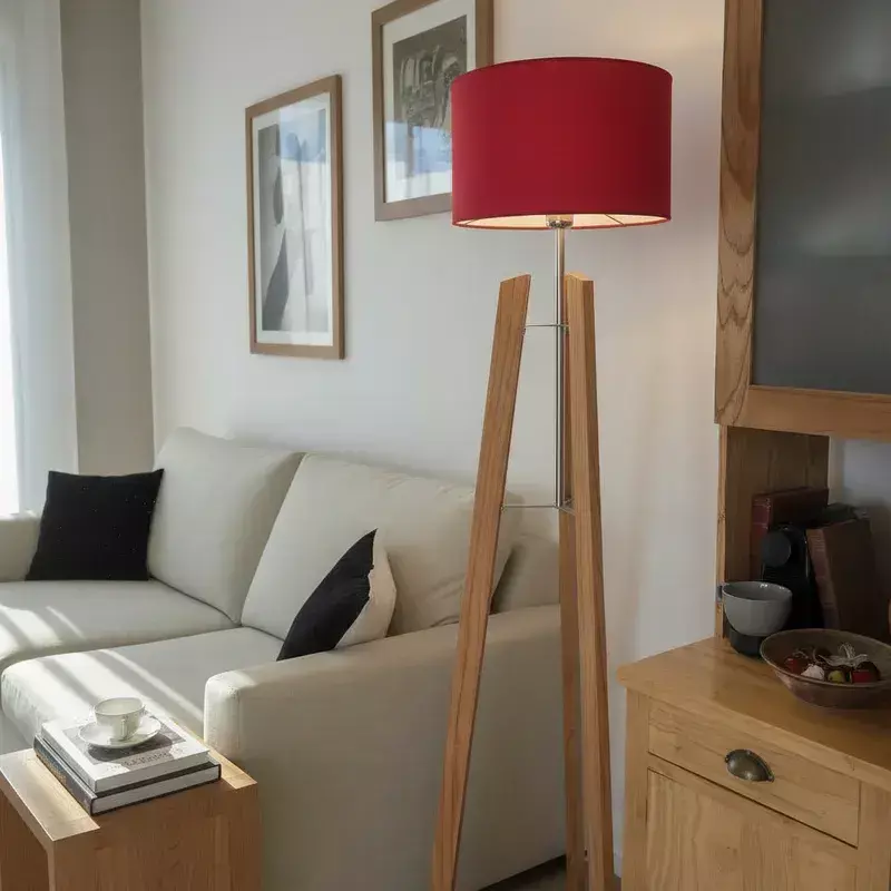 Elegante diseño que combina la calidez de la madera con una estructura en acero inoxidable única. La base de madera añade un toque un toque de naturaleza a tu hogar y la estructura central metalica le da una gran estabilidad. La pantalla difunde la luz de manera uniforme para crear una atmósfera acogedora
